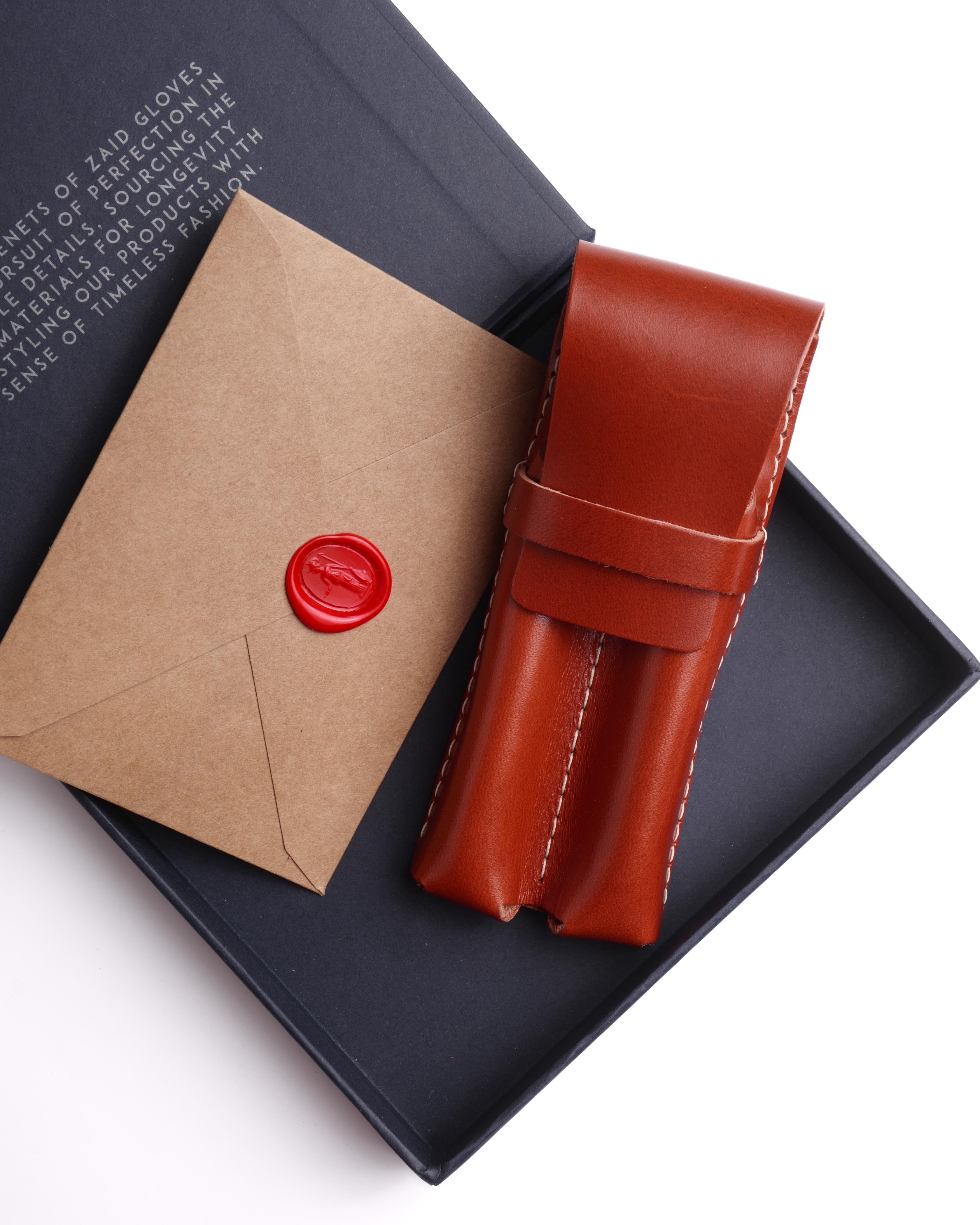 Leather Pen Holder Of 2 - Tan