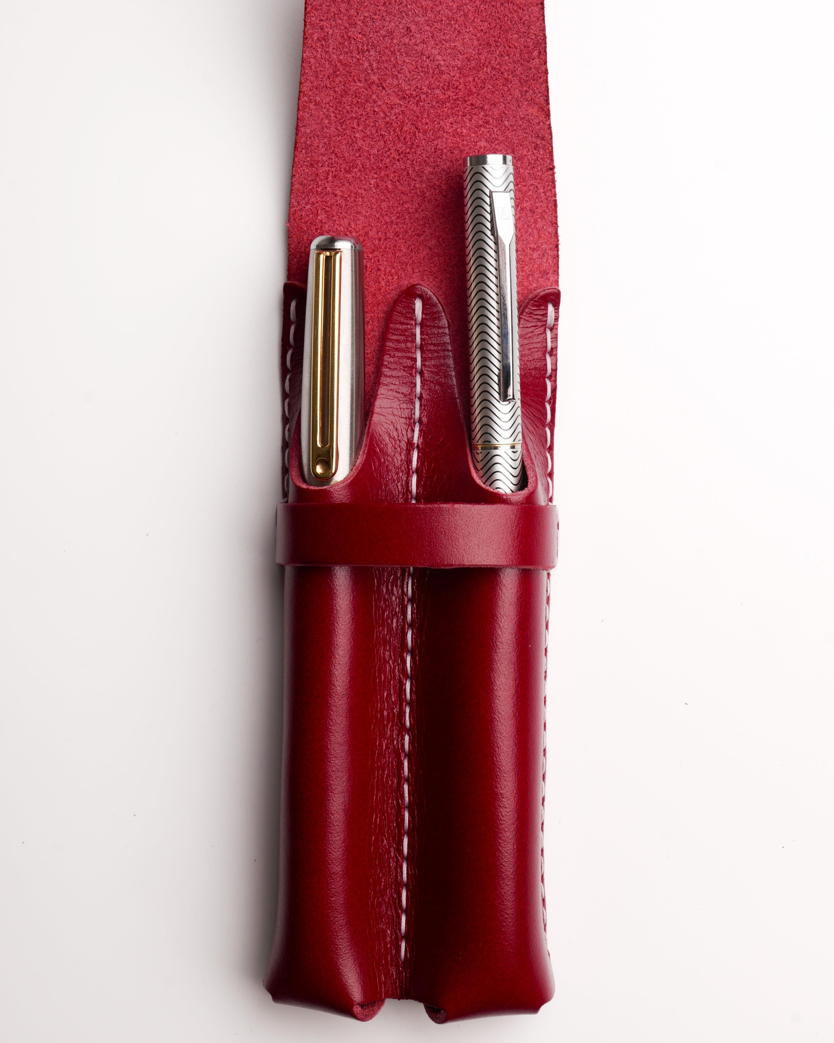 Leather Pen Holder Of 2 - Red