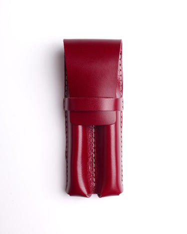 Our hand-stitched fountain pen holder, a product of our timeless design philosophy, is designed to safely carry and protect two pens. Its clean silhouette highlights the pen’s elegant presence while offering a practical everyday experience. Crafted from high-quality genuine calf leather and finished entirely by hand stitching, it develops a distinctive patina over time, turning each holder into a personal and one-of-a-kind piece.