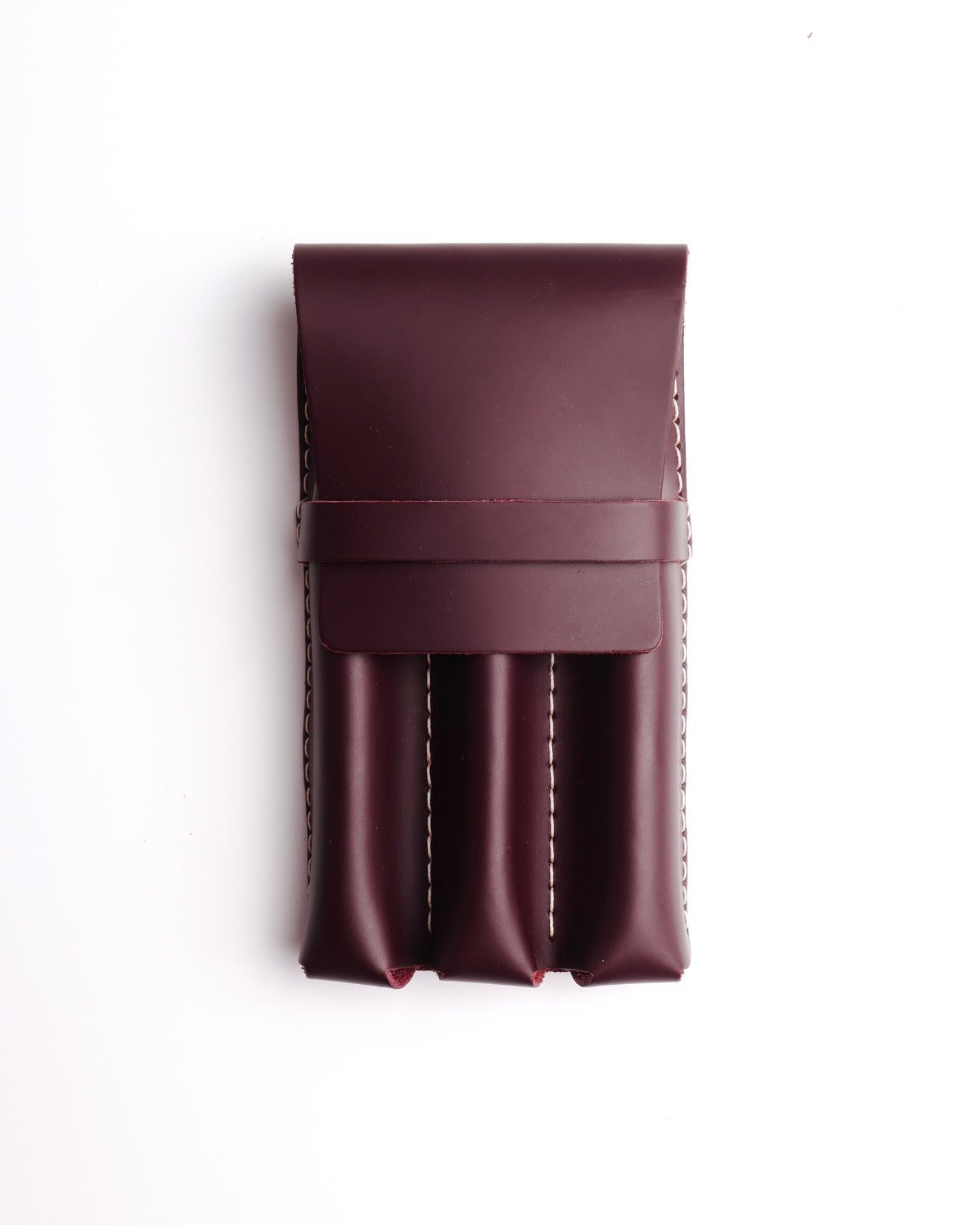 Our hand-stitched fountain pen holder, a product of our timeless design philosophy, is designed to safely carry and protect two pens. Its clean silhouette highlights the pen’s elegant presence while offering a practical everyday experience. Crafted from high-quality genuine calf leather and finished entirely by hand stitching, it develops a distinctive patina over time, turning each holder into a personal and one-of-a-kind piece.
