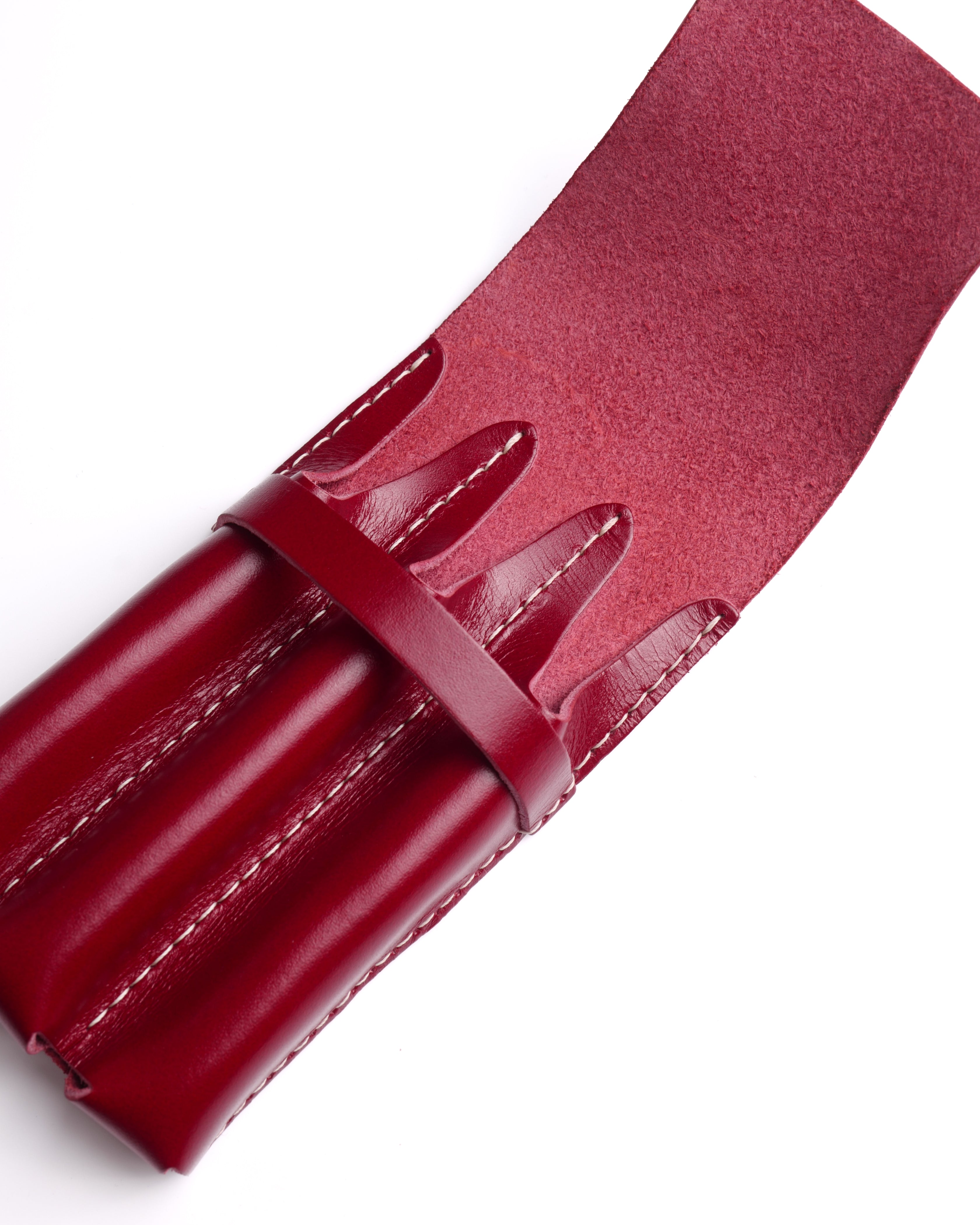 Our hand-stitched fountain pen holder, a product of our timeless design philosophy, is designed to safely carry and protect two pens. Its clean silhouette highlights the pen’s elegant presence while offering a practical everyday experience. Crafted from high-quality genuine calf leather and finished entirely by hand stitching, it develops a distinctive patina over time, turning each holder into a personal and one-of-a-kind piece.