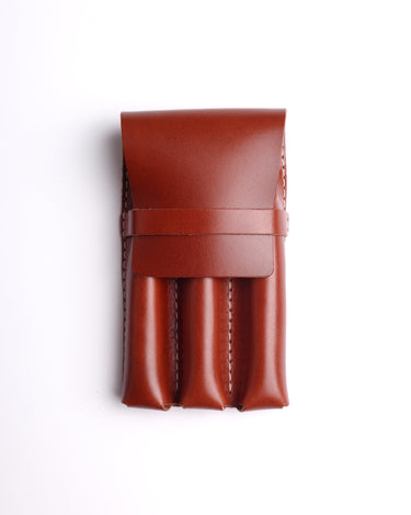 Our hand-stitched fountain pen holder, a product of our timeless design philosophy, is designed to safely carry and protect two pens. Its clean silhouette highlights the pen’s elegant presence while offering a practical everyday experience. Crafted from high-quality genuine calf leather and finished entirely by hand stitching, it develops a distinctive patina over time, turning each holder into a personal and one-of-a-kind piece.